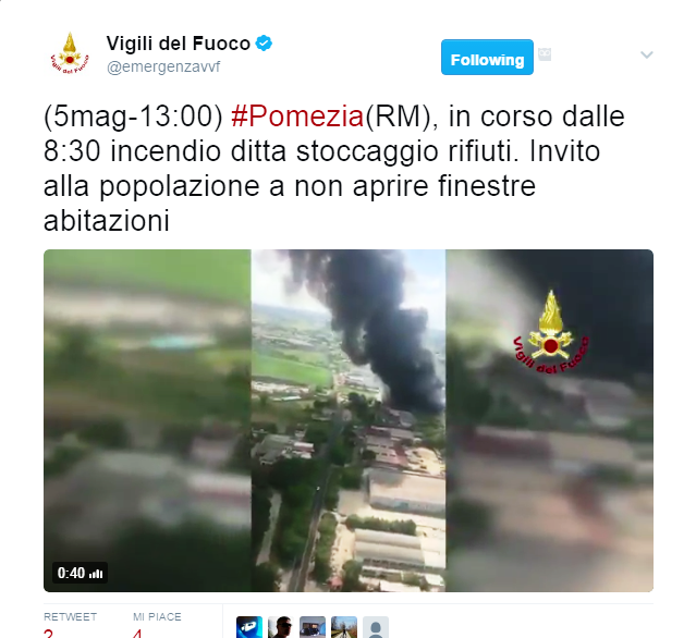 Ore 16:39 – “Per quanto ci risulta adesso dalle comunicazione della Asl 6 i fumi non si sono dispersi sulla città di Roma, per cui al momento non abbiamo situazioni di criticità in città”. Così la sindaca della capitale Virginia Raggi. Per il presidente della Regione Lazio Zingaretti, si tratta di un “incidente molto grave”. In un’ordinanza è stato chiesto alla popolazione dell’area di fare attenzione a consumare frutta e verdura di propria produzione. “Non prima di averla ben lavata”.